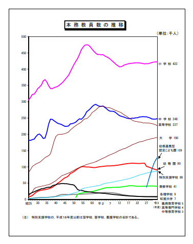 厚生労働省の調査によると、すべての学校種において教員の平均年齢が上昇し、過去最高を記録しました。