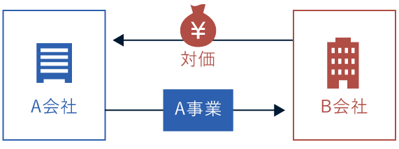 事業譲渡では株式ではなく、事業資産そのものを売却します。事業資産とは例えば事業に使っている店舗や工場、設備などで、これらの資産に値段をつけて売却し、対価として現金を受け取ります。